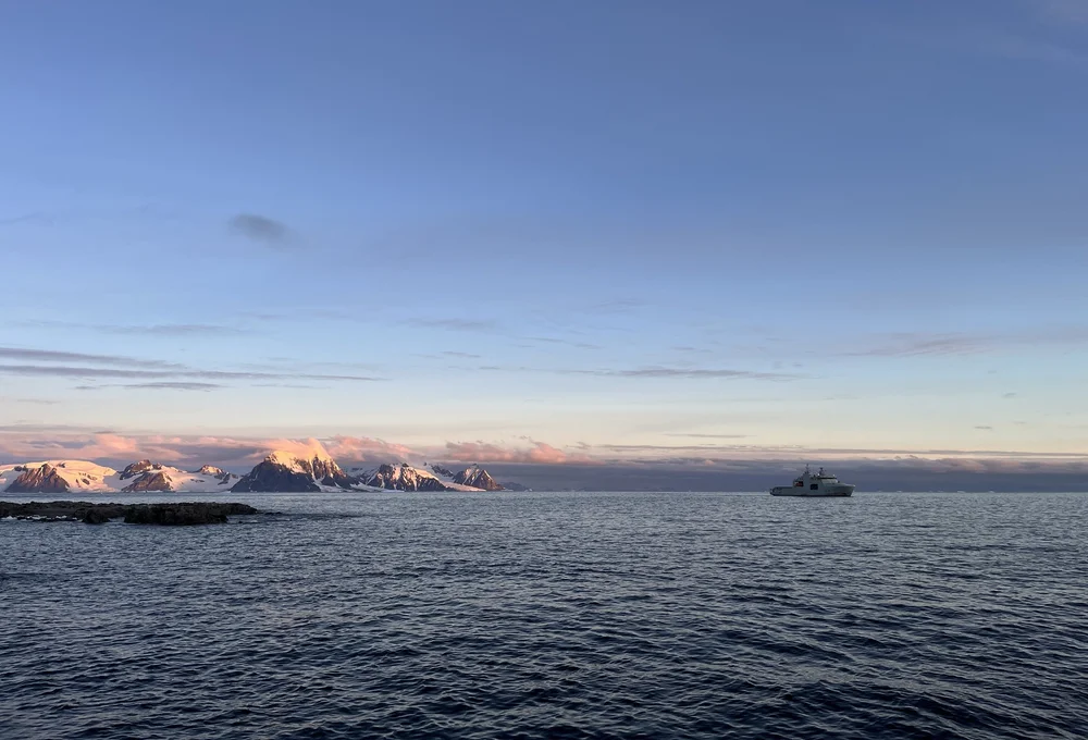 HMCS margaret Brooke off rothera station during the canadian antarctic science research expedition on March 15, 2025 (Courtesy of Dr. kevin wilcox)